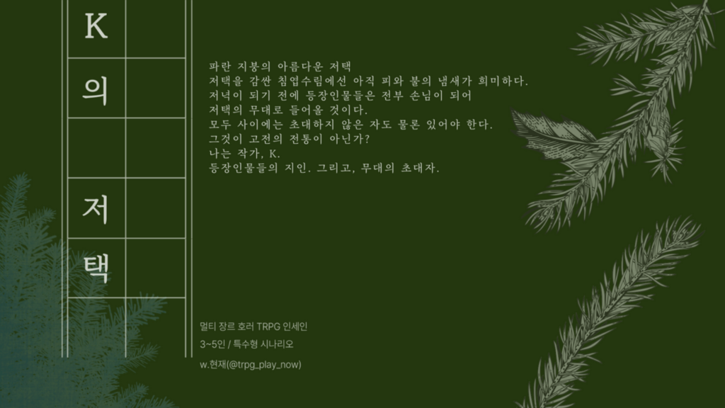 침엽수림의 가장자리, 파란 지붕의 서양식 저택으로 여러분은 향합니다.