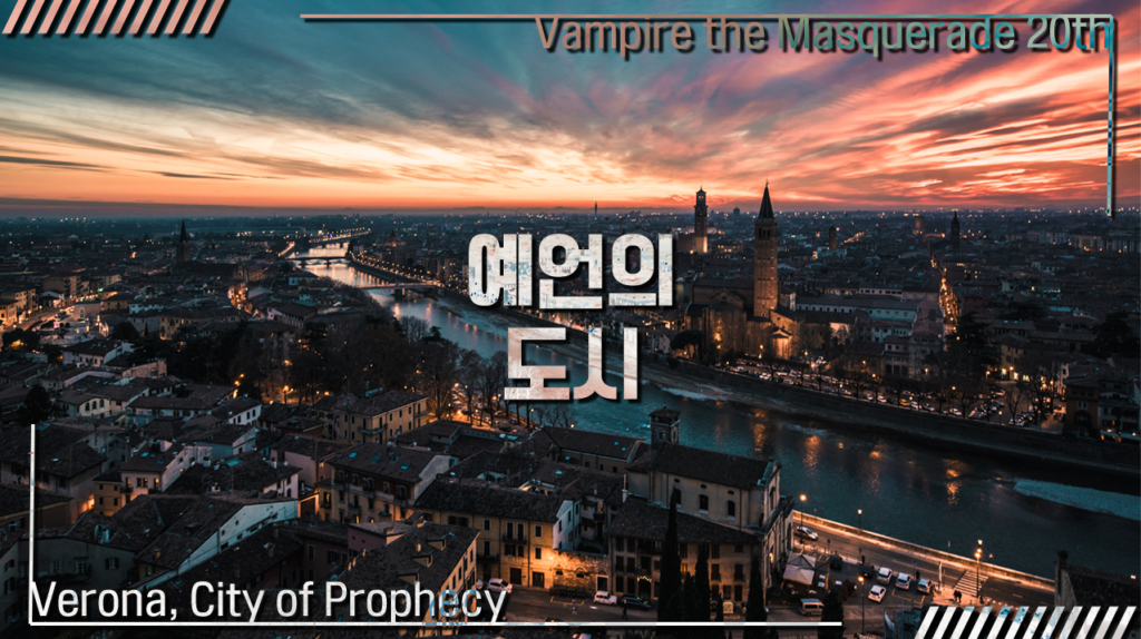 최근 혈족 사회의 뒷편에서 은밀한 소문이 퍼지고 있습니다. 베로나라는 도시에 대해서요. 사람들은 이 도시가 예언의 도시라고 합니다. 이 도시에서 벌어지는 일 중 하나는 무조건 아주 정확한 예언을 따른다면서. PC들은 각자 자기만의 이유를 가지고 베로나로 향합니다. 베로나에는 도시만의 추가적인 규칙이 있습니다. 「도움을 무시하지 말 것」 적극적으로 지킬 필요는 없지만 지키지 않을 경우 어떻게 될지는 모릅니다. 무엇이 되었던, 여러분은 이용당하고 있습니다.